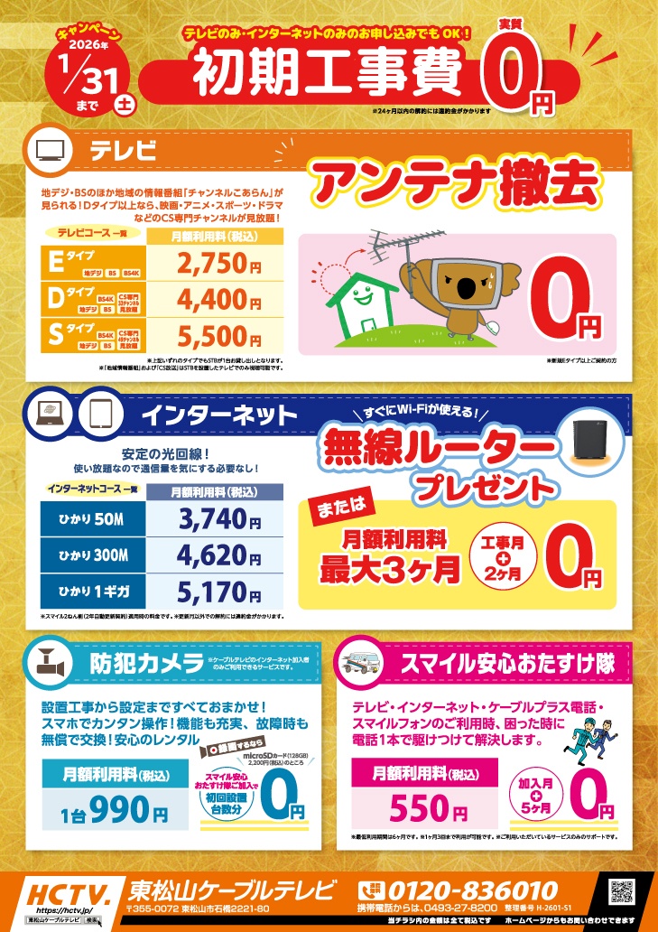 【1/1新聞折込チラシ】テレビもインターネットも防犯も全部まとめてケーブルテレビにおまかせ!