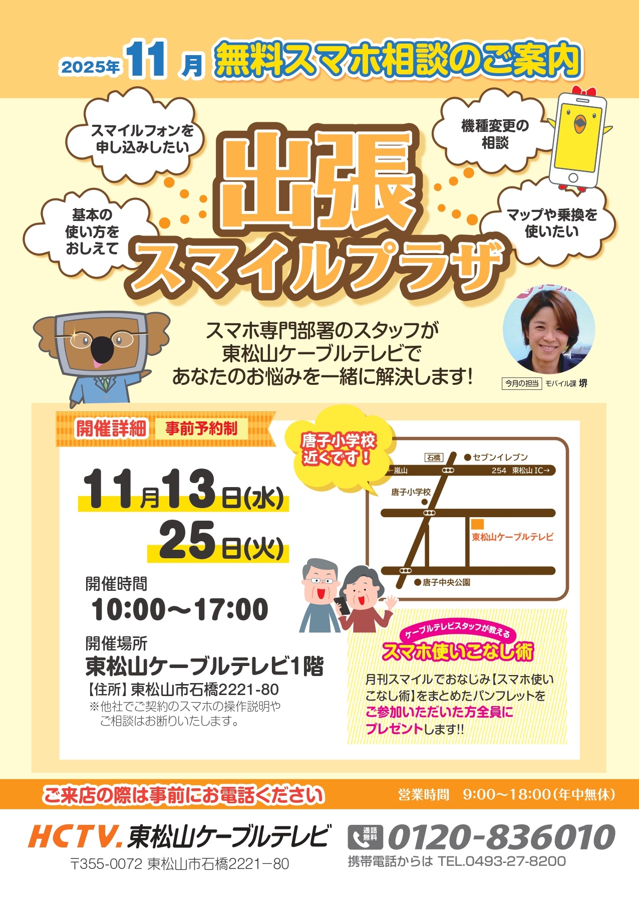 東松山ケーブルテレビでは、スマホ専門部署のスタッフがあなたのスマホのお悩みを一緒に解決する「無料スマホ相談会」を今月も開催いたします!
